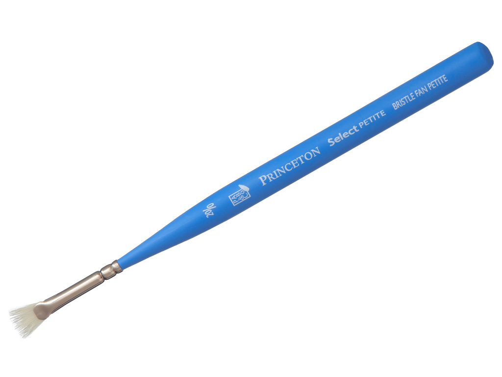 Princeton Select Petite Bristle Fan brushes are excellent for blending, softening edges, and creating natural textures like foliage, grass, or hair. Their spread-out bristles allow you to layer color subtly or build texture with controlled strokes.