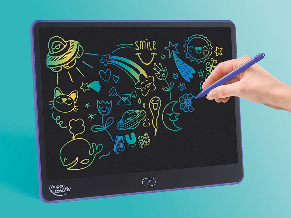Maped Creativ Magical LCD zīmēšanas planšete ļauj bērniem bezgalīgi zīmēt, rakstīt vai skicēt — bez papīra, bez zīmuļiem un bez ierobežojumiem! Pateicoties lielajam LCD ekrānam, katra līnija acumirklī parādās 3 krāsās, radot maģisku efektu. Komplektā iekļautais stienītis ļauj bērniem brīvi radīt, un, piespiežot pogu, darbu var izdzēst. Iebūvētā bloķēšanas sistēma aizmugurē novērš nejaušu dzēšanu, padarot tās izmantošanu vēl ērtāku. Viegla, pārnēsājama un bez nekārtības – šī planšete ir ideāli piemērota izklaidei, atrodoties ceļā. Elastīgā aukla notur stienīti piestiprinātu, lai tas nekad nepazustu.